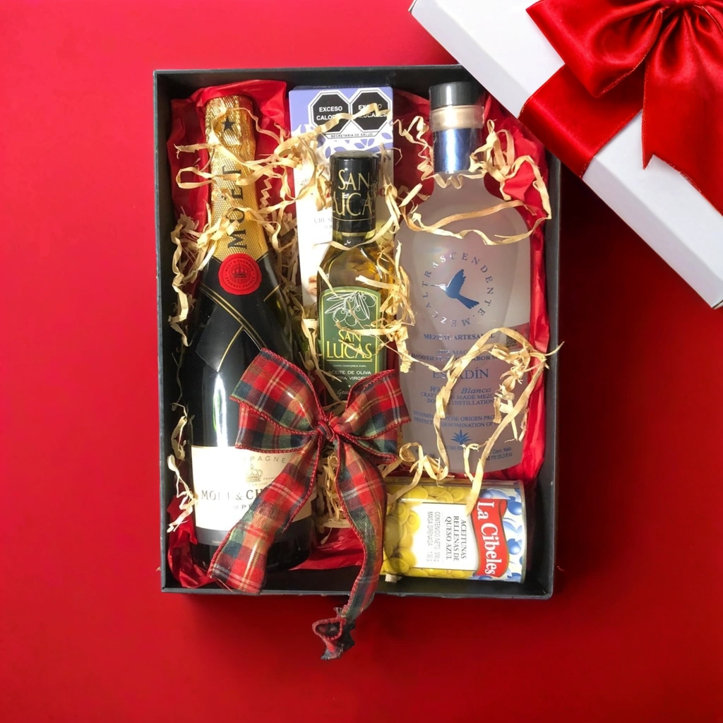 Selección cuidadosa de productos gourmet y de primera calidad que aseguran el impacto y el prestigio de tu regalo.