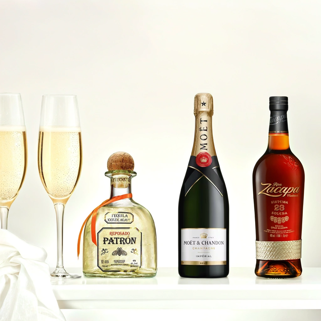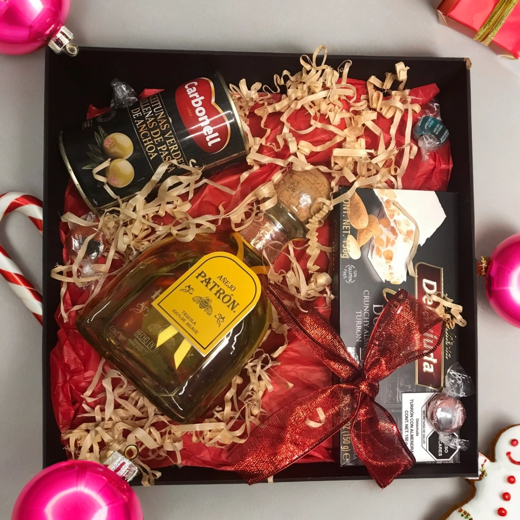 Nuestra colección premium está diseñada para obsequios individuales que destacan por su distinción y sobriedad. Cada caja combina licores de clase mundial como Moët & Chandon, Zacapa o Patrón con aceite de oliva español y turrón selecto, creando una experiencia completa y refinada.